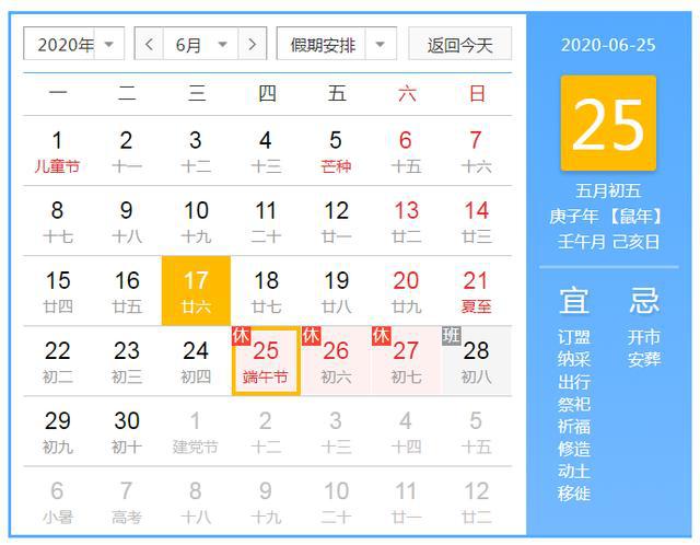 還有不到一個月時間,端午小長假就要來了!現在已經6月中旬了,離假期還遠嗎?六月可是有一個小長假在等著大家的,那就是端午節。端午放假安排已經出來了,2020年端午節是6月25日,此時正好是周四,所以可以連休四天,放假時間從6月25日到27日,周日6月28日調休上班。有些地方已經發布了端午節放假通知,廣州思達放假期間正常為大家服務。